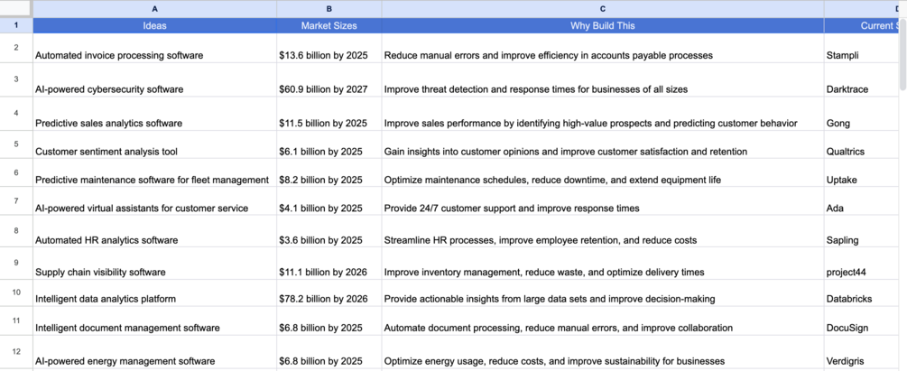 If you're looking to build an AI B2B SaaS company but need help deciding which industry to go into, I created a list of ideas, market sizes, why people should make these, and current solutions/their websites.